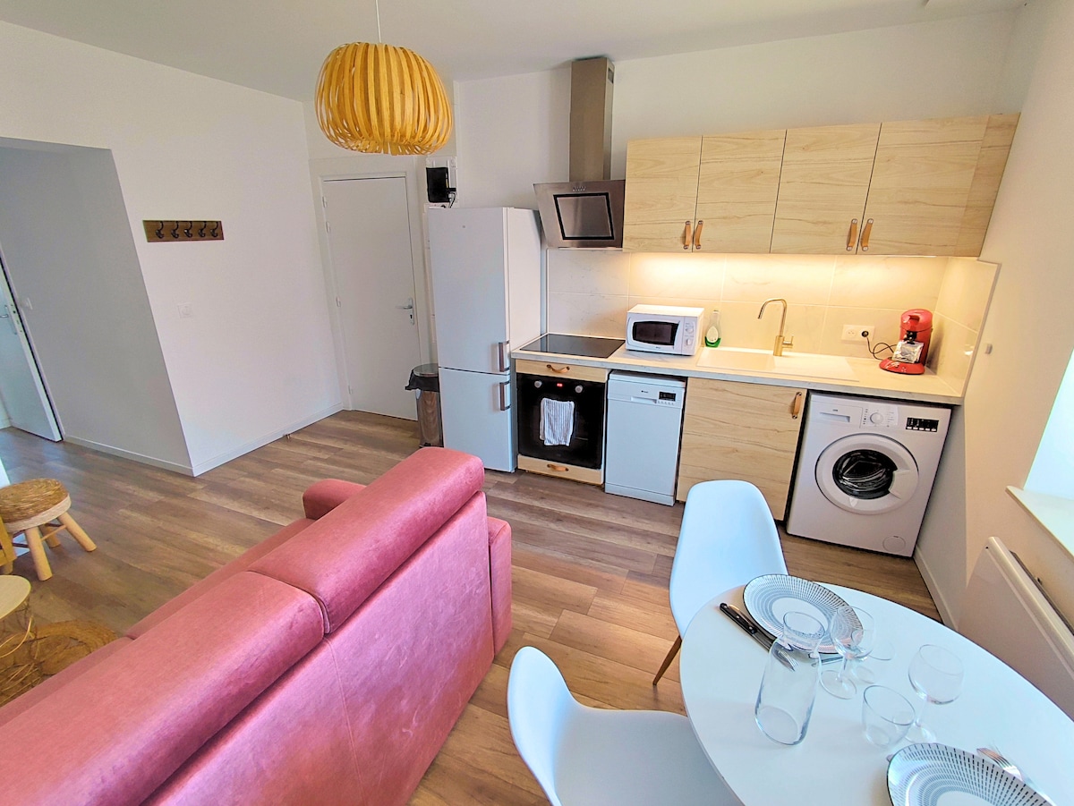 Cet appartement séduit par son espace de vie ouvert avec un salon confortable et sa grande cuisine moderne, le tout décoré et pensé pour garantir un maximum de sérénité. Une salle de bain splendide ainsi que 2 chambres spacieuses avec dressing viennent compléter ce lieu de vie plein d'espace. Une résidence parfaite pour un style de vie élégant. TV HD, chaines du câble & VOD, connexion haut débit Proche supermarché et autres commodités 20 mn de Thionville 20 mn de Metz 30 mn de Luxembourg