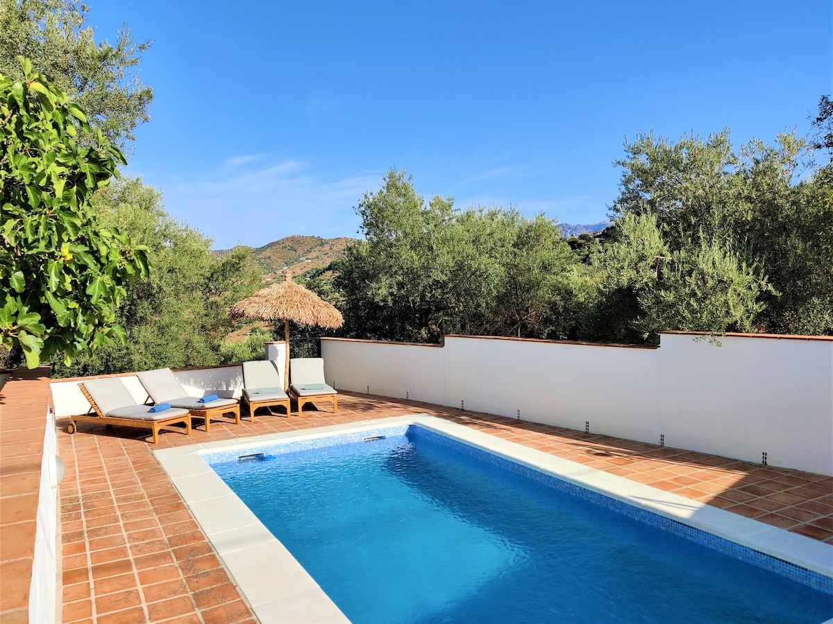 Teach ciúin tuaithe sna sléibhte óna bhfuil radhairc ar an bhfarraige mhór. Lochán grianmhar, tost, agus an dúlra thart timpeall. Foirfe do thréimhsí fanachta geimhridh: teochtaí éadroma, go leor solais, agus luí gréine áille thar an Meánmhuir. Foirfe do lánúineacha atá ag iarraidh scíth a ligean, siúl, agus taitneamh a bhaint as an Andalúis agus iad ar shiúl ón sluaite. San earrach agus sa samhradh, bíonn an teach ina thearmann príobháideach ina bhfuil linn snámha mhór phríobháideach, príobháideacht iomlán, agus aerchóiriú chun an chompord is mó a thabhairt. Rochtain éasca ó Aerfort Málaga, ach go hiomlán suaimhneach.