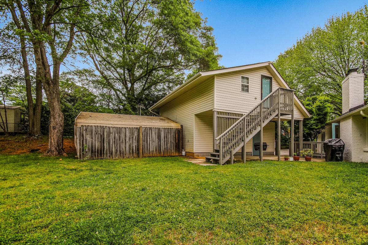 Tá Spás Tranquil suite go háisiúil gar do Downtown Greenville. Sa seomra suite mór tá an seomra leapa, an áit suí, an chistinéad (cuisneoir/reoiteoir/oigheann comhiompair), seomra folctha, agus áit staidéir/ithe. Is áit nua - athchóirithe é ag deireadh mo thí le bealach isteach príobháideach. Tá an spás fáilteach agus fáilteach... spás foirfe chun imeacht ón fhuadar. Cé go bhfuil nóiméad ó Downtown, mothaíonn an suite go bhfuil tú sna sléibhte le clós cúil príobháideach agus go leor crainn. Bain sult as d'fhanacht!