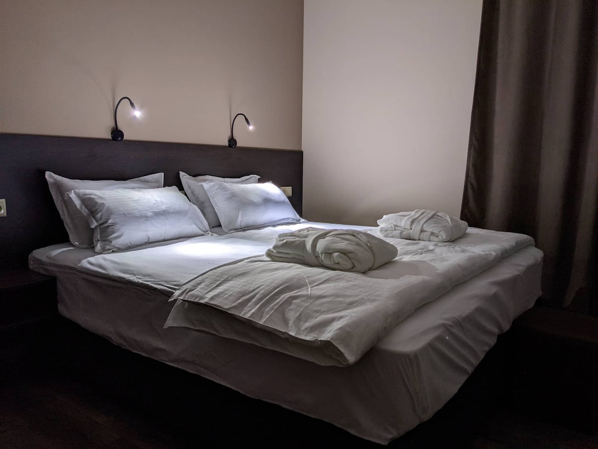 Bí ar do shuaimhneas inár n - árasán nua 2 sheomra leapa in Kazbegi. Tá 2 sheomra leapa mhóra gheala san árasán ina bhfuil leapacha compordacha ar mhéid rí agus cistin lánfheistithe.