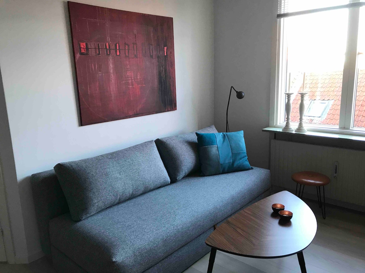 Árasán 50 m2 an - chluthar agus deas i gcathair Roskilde, d'fhonn na sráide do choisithe, na bialanna, na caiféanna, an foirgneamh Unesco Roskilde agus gar don chuan. Is éard atá san árasán cistin bheag atá feistithe go maith le sorn, oigheann agus micreathonnán, seomra folctha agus meaisín níocháin agus seomra leapa beag le leaba do dhuine amháin agus vardrús mór. Sa seomra suí tá tolg compordach atá oiriúnach do bheirt, teilifís agus bord. Tá an t - árasán athchóirithe le déanaí.
