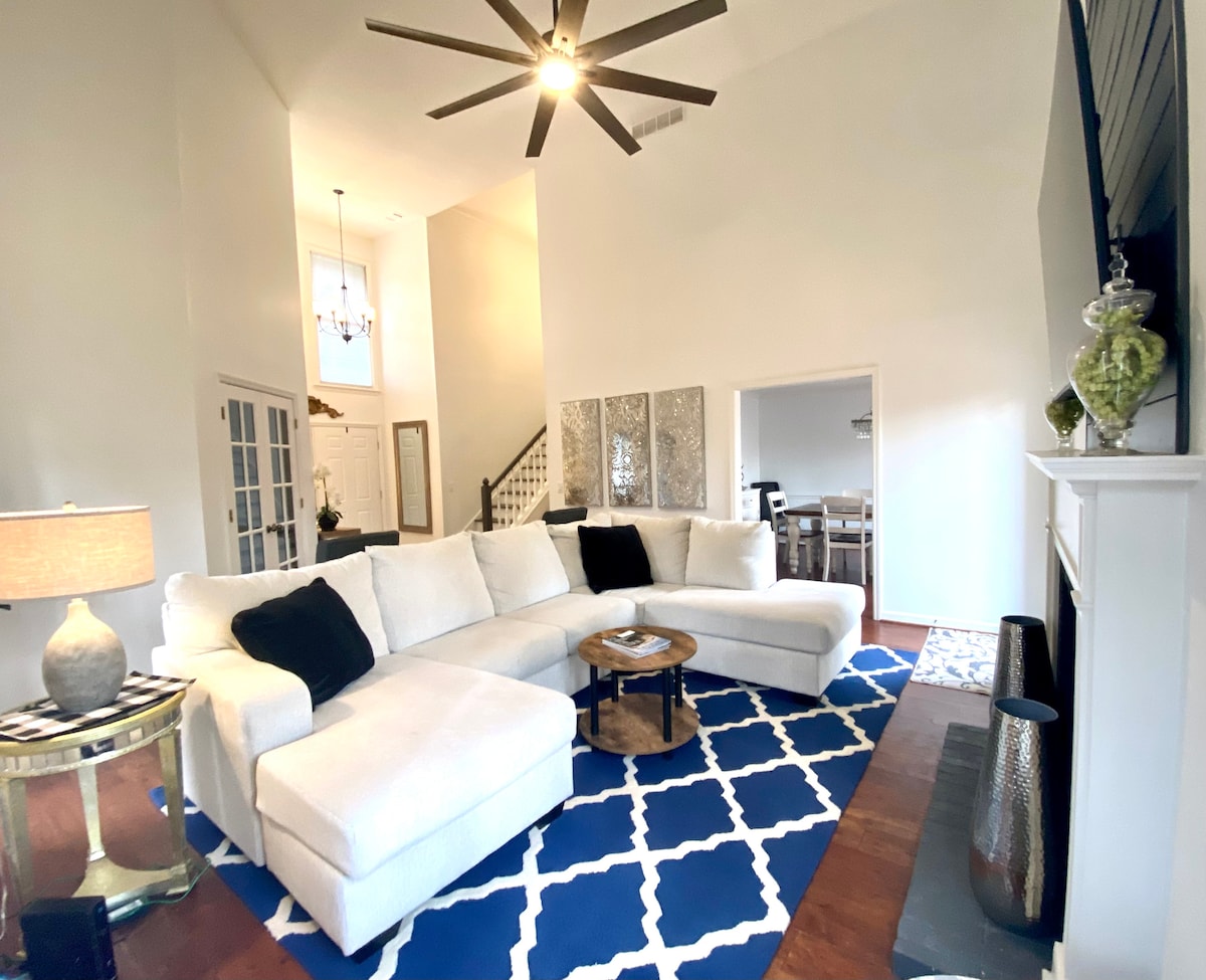 Bródúil glan, Ciúin, Sábháilte! Siúil go lár Alpharetta/Avalon. Go leor bialanna, caife, uachtar reoite, siopadóireacht, páirceanna madraí HWY 400: 5 nóiméad(bealach amach 10, 1.6 míle) Amfaitéatar Bhanc Ameris: 7 nóiméad, 2.2 míle Downtown Alpharetta: tiomáint 2 nóiméad/siúlóid 11 nóiméad, 0.5 míle Avalon:<5 nóiméad tiomána/siúlóid 16 nóiméad, 1 mhíle Oiriúnach don Obair: Deasc, monatóir 27", clár bán & Wi - Fi láidir Compordach: Méid rí, leapacha sárchompordacha sa dá sheomra codlata Athchóirithe ar an 24 Feabhra. Tá dúil mhór agam d'eispéireas iontach a chinntiú.