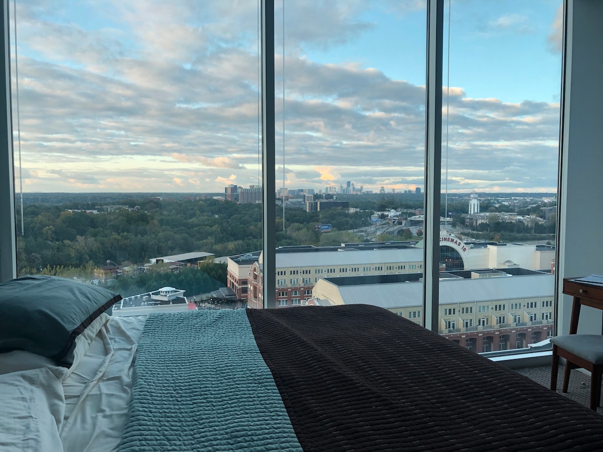 Lig do scíth agus bain sult as an nglow iar - siopadóireachta sin. Tá cuma throm ar ár seomraí aíonna le gnéithe dearaidh tarraingteacha amhail vardrúis aghaidhe oscailte, scáthánaithe, suíocháin fhuinneoige theolaí, ballaí atá maisithe le healaín a dhéantar go háitiúil – chomh maith le leaba do bhrionglóidí. Bronnadh an Gradam 'Rogha Léitheora Conde Nast 2021' ar an Óstán #1 in Atlanta. Bí ag meascadh go hard sa spéir ag an mbeár dín Rose & Rye, tóg manglaim sa Lobby Bar, nó buail isteach chuig Sister le haghaidh plátaí beaga agus deochanna.