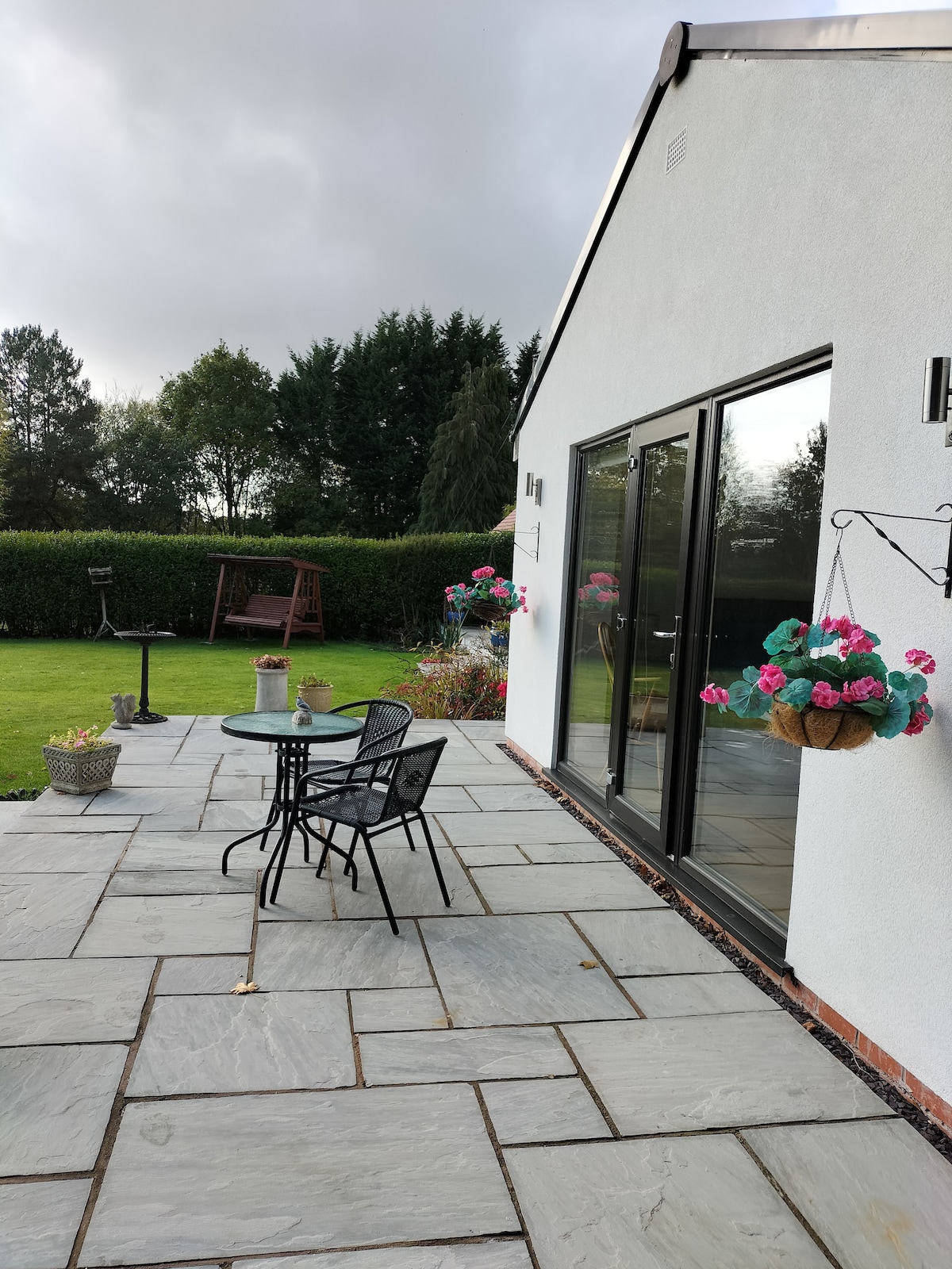Suaimhneach 3 scioból BR, radhairc allamuigh, páirceáil, gairdín.