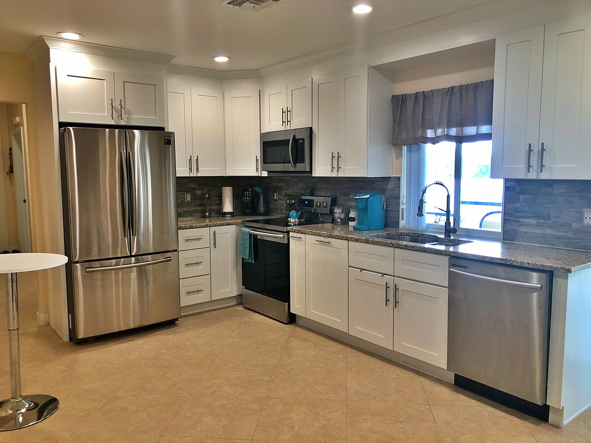 Beautifully renovated ranch-style home in the Eastwood section of Wellington, less than 10 mins from the National Polo Center in Palm Beach. The home is furnished with high end appliances & distinguished furniture, incl a Panama Jack Master BR set w/ King Serta mattress. (2 Queen BRs also). Relax in the lanai & enjoy delicious mangos off the backyard tree in season. The backyard is fenced in. Large garage. Enjoy entire home in quiet & delightful neighborhood close to everything!