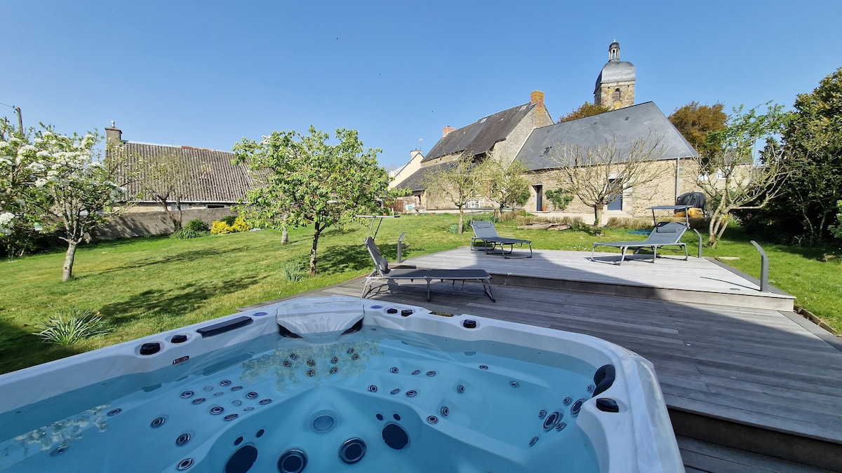 Gîtes à 10 minutes du Mont Saint Michel SÉJOUR BIEN-ÊTRE DANS UNE SUITE AVEC JACUZZI PRIVATIF Le Domaine de la Besnerie Votre hôte Kireg a imaginé et créé le domaine autour de l’exotisme et du romantisme. Il comprend 5 gîtes avec leur jacuzzi privatif aux ambiances différentes, d’un salon d’accueil ouvert 24h/24, d’un service de conciergerie, une piscine chauffée, une terrasse équipée de salon de jardin, un solarium avec transats, de tables de pique-nique ainsi que d’un boulodrome.