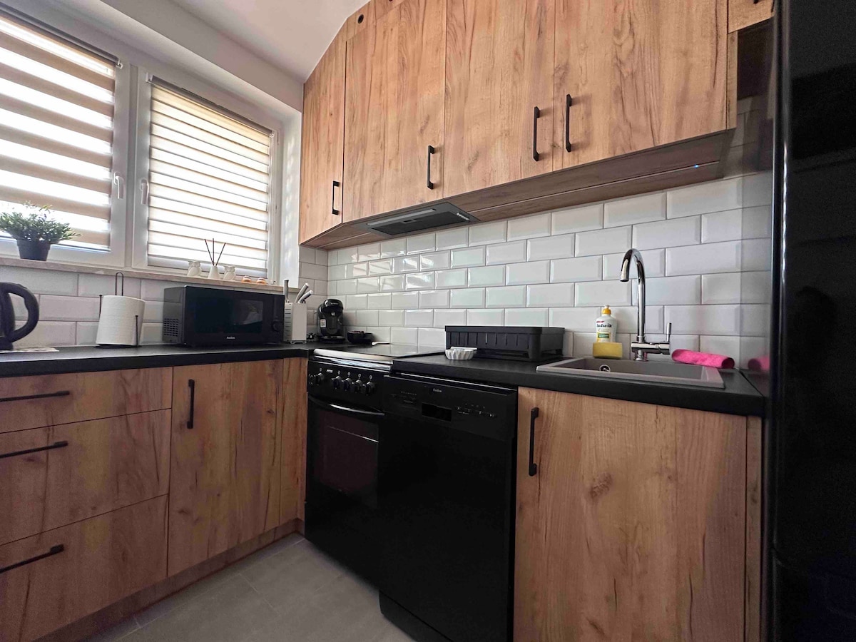 Modern and spacious 2-bedroom apartment with a balcony in a quiet area of Zabrze. Perfect for families, couples or business travelers. The apartment accommodates up to 4 guests and features two separate bedrooms, a comfortable living room with Smart TV, Netflix and high speed internet a fully equipped kitchen and free parking near the building. Enjoy morning coffee on the balcony and quick access to Katowice and nearby attractions like Arena Zabrze.