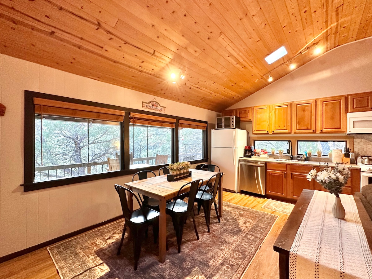 Fáilte go dtí an Bhanríon Anna, tearmann cábáin gleoite atá suite i gcroílár Ruidoso, NM! Bain sult as maireachtáil sléibhe le HVAC, dhá sheomra leapa, leaba rí phluis, leapacha cúpla bunc, agus áit mhór mhaireachtála atá foirfe do chruinnithe agus do scíth a ligean. Agus í lonnaithe go háisiúil, cuireann an Bhanríon Anna tiomáint ghearr ar fáil do ghníomhaíochtaí éagsúla lasmuigh amhail fánaíocht, rothaíocht sléibhe, sciáil agus clársciáil. Siúl feadh na habhann nó tiomáin laistigh de nóiméad chuig siopaí, dánlanna, bialanna agus roghanna siamsaíochta Midtown.