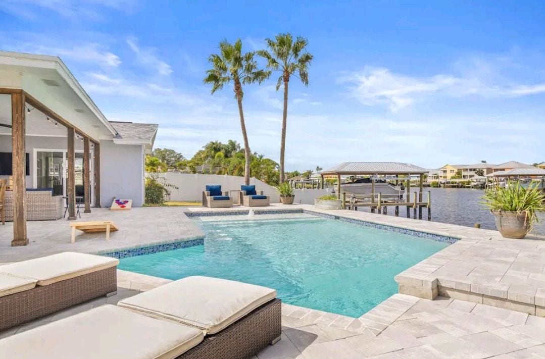 Lig do scíth ag d'aisling cois uisce in Apollo Beach le linn snámha phríobháideach, cadhcanna agus radhairc luí na gréine. Féach deilfeanna agus manatees ón gcúlchlós nó scíth a ligean ar tholgairí le bia agus cluichí lasmuigh. Taobh istigh: cistin iomlán, áit itheacháin, 2 sheomra leapa, 2 sheomra folctha, chomh maith le seomra suí breise ina bhfuil tolg codlata agus vardrús a fheidhmíonn mar 3ú seomra leapa. In aice le Tampa, tránna, bia, agus nithe is díol spéise do theaghlaigh — atá oiriúnach do theaghlaigh, do chairde, nó do shaoire ghearr rómánsúil i dteach príobháideach fairsing. Lic# DWE3913431