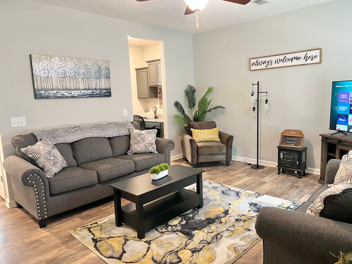 Árasán dhá sheomra leapa adorable, 1 seomra folctha, i suíomh suaimhneach álainn. Miontuairiscí ar lár Nashville, Grand Ole Opry, Staid Titans, Staidiam Geodis, Ollscoil Stáit Láir TN nó Coimpléasc Sacair Chontae Williamson. In aice le go leor bialanna agus cearnóg aoibhinn lár an bhaile in Murfreesboro. Is bealach déphléacsach é seo ina bhfuil bealach isteach príobháideach agus cabhsa. Lig do scíth ar an deic iontrála nó sa seomra suí compordach, agus tú ag breathnú ar na scannáin is fearr leat.