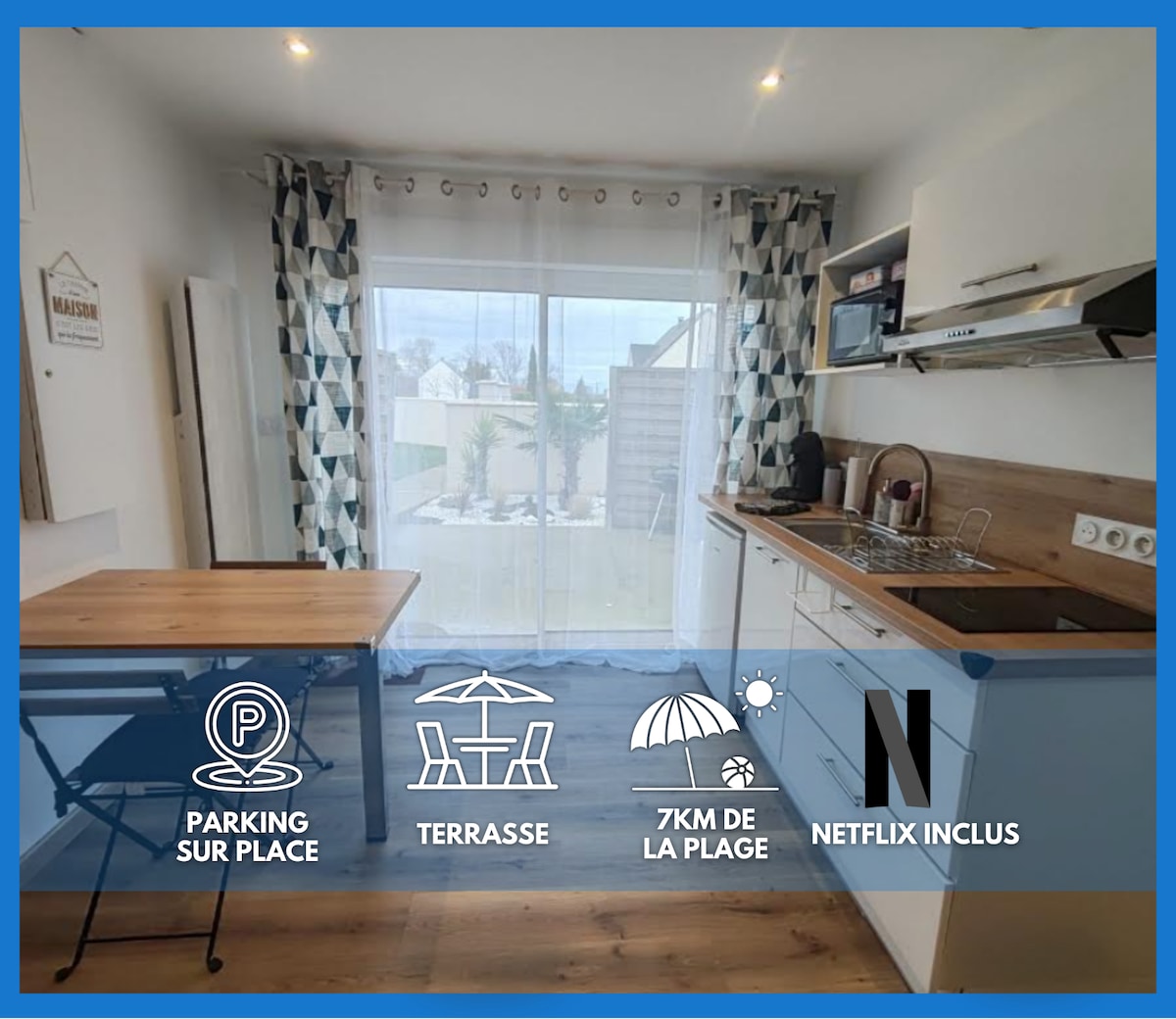 30 méadar ón trá ghainmheach, i gcroílár an tsráidbhaile, cuirimid fáilte romhat chuig Les Enfants de Neptune. Is teach geal é do 6 dhuine, le 3 sheomra leapa agus 3 sheomra folctha, (2 leithreas, ceann ar an gcoinne agus 1 cheann ar an gcéad cheann) le clós theas le troscán gairdín. In aice leis na siopaí.