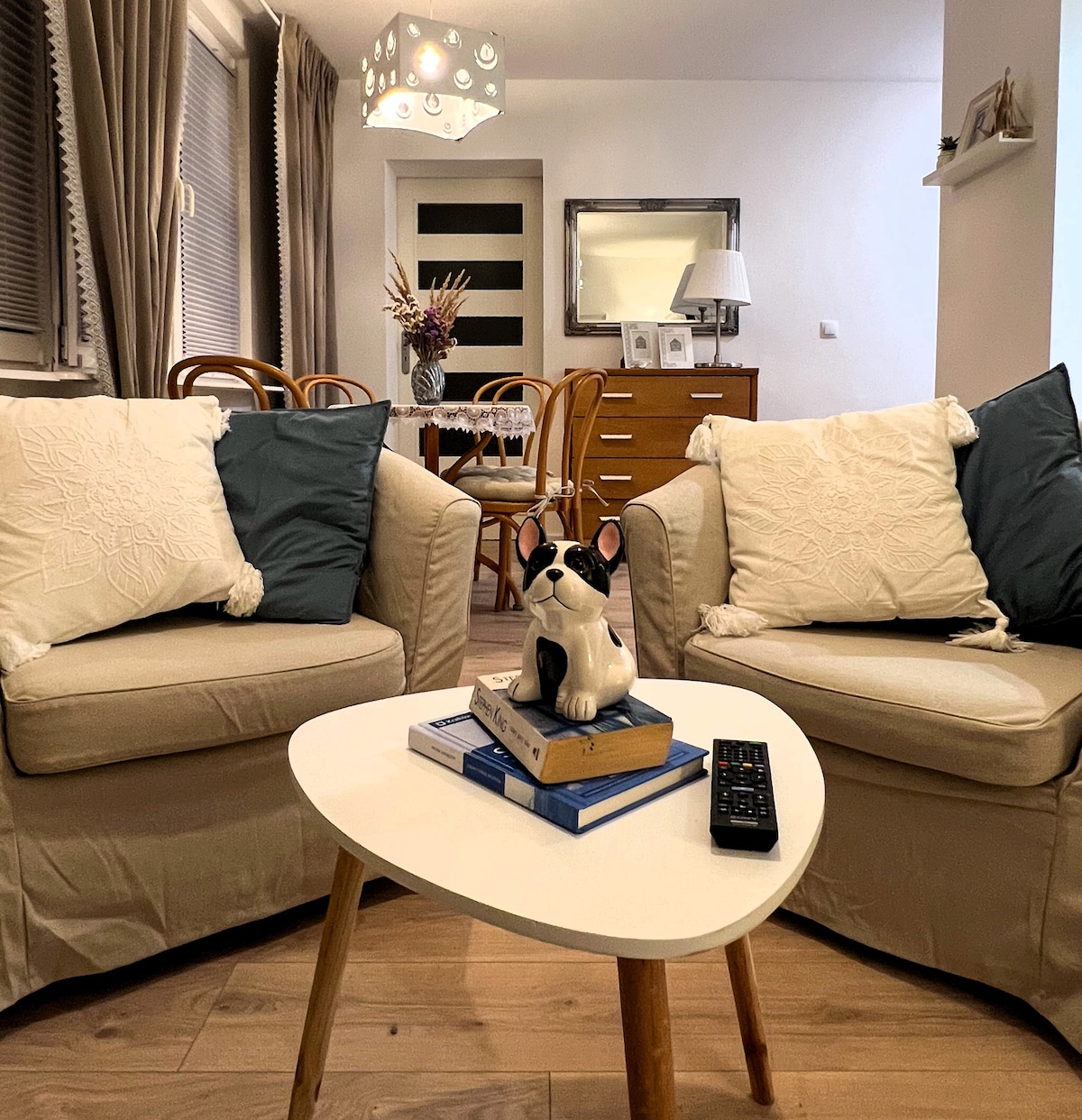 A very well-rated, much bigger than usual 65m2 apartment decorated in a traditional urban Krakow style. Nice living room with a sofa, two bedrooms with three comfortable beds , bathroom, large, well-equipped kitchen. Fresh towels and bedding. Cosy space for up to six people. Fast and stable WiFi, premium cable TV, a place to work, flexible late check-in, a private garage. Quiet neighbourhood, lots of greenery, shops, market square, direct train connectivity to the airport.