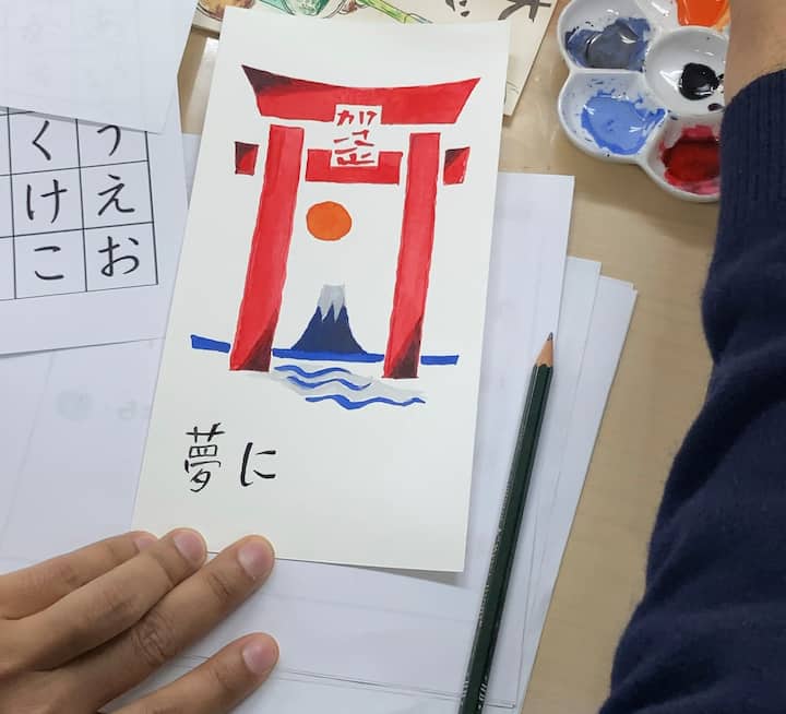 Péinteáil Ealaín ‘Etegami’ na Seapáine i dTeach Traidisiúnta