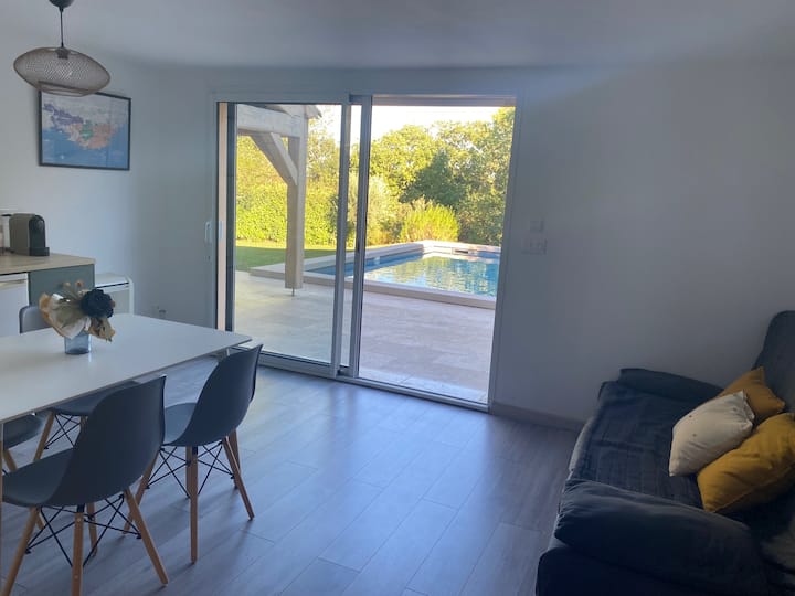 Gite le 2 sheomra leapa i villa ailtireachta.