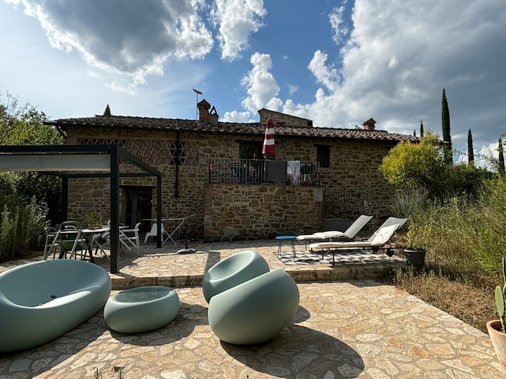 In Chianti, villa ina bhfuil linn snámha agus cúirt leadóige