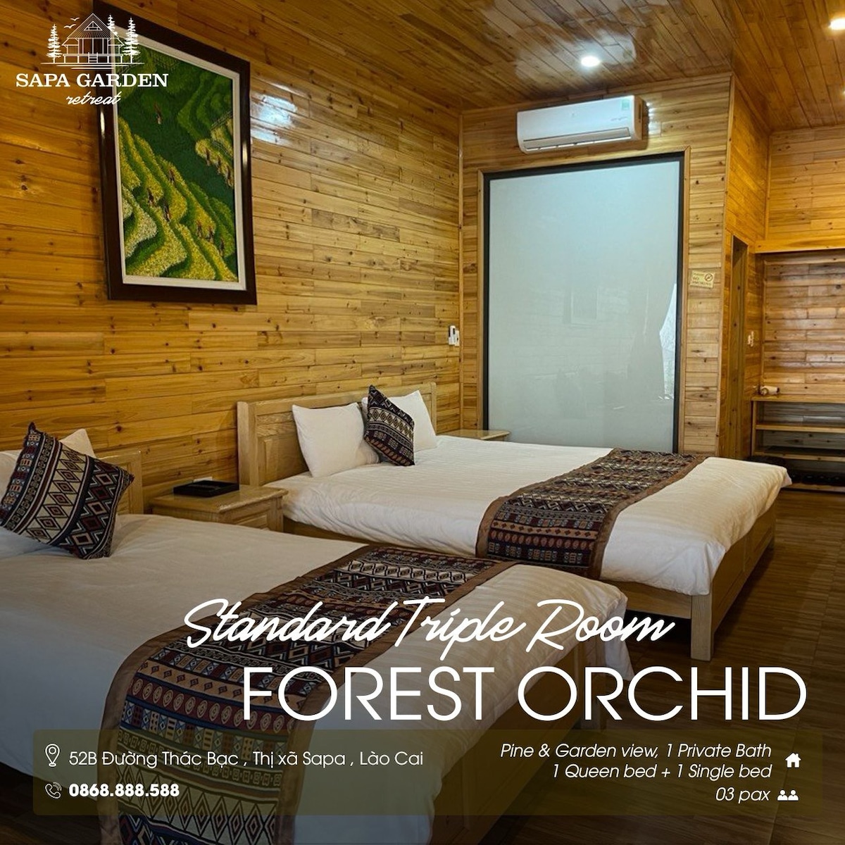 Tugann an villa radhairc ar na páirceanna ríse sraithe agus ar na sráidbhailte áitiúla. Tá mionbheár, teilifíseán cothromscáileáin, áit chónaithe, cistin lánfheistithe agus 2 sheomra folctha ina bhfuil cithfholcadáin mhóra feistithe sa villa. Go hidéalach, tá Joy Villa Sapa ar cheann de na háiteanna uathúla agus an stad is fearr le turasóirí agus iad ag teacht go Sa Pa le spás fileata síochánta i lár na sléibhte agus na bhforaoisí. Tá an - áthas orainn fáilte a chur romhat