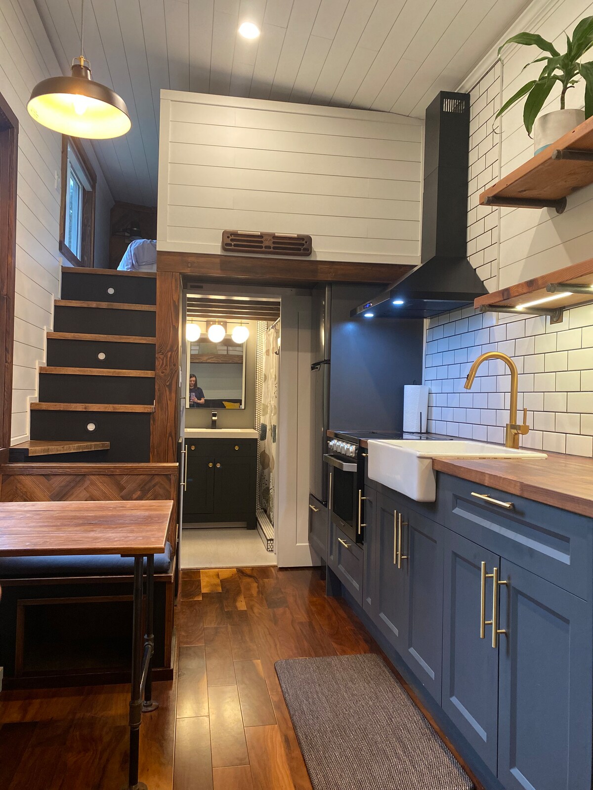 Tógann an seomra beag teolaí seo, seomra folctha amháin agus cábán folctha, a thógann máistir - shiúinéir & ceardaí ag baint úsáid as ábhar ardchaighdeáin agus athghinte. Tá bíomaí adhmaid nochta ag an tsíleáil, tá tocht ar ardchaighdeán ar an leaba le línéadach álainn cadáis 100%, tá urlár méaróg téite sa seomra folctha le cithfholcadán siúil isteach. Áit bheag cistine le sm. cuisneoir beáir, micreathonnán, tóstaer, cumascóir, sceanra & miasa, Go hiontach chun béilí a thabhairt chun bealaigh. suite suas réadmhaoin chlaonta ar an gcósta thiar i dteach taobh thiar d'óstaigh atá ceangailte isteach sna crainn