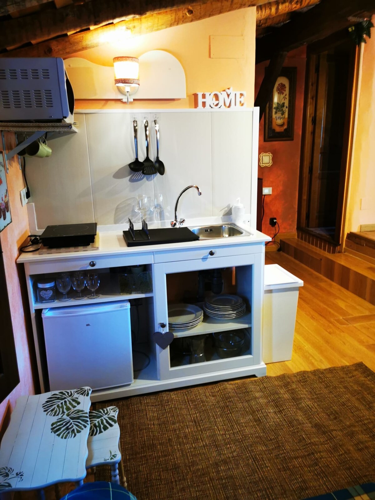 Fáilte chuig an teach a bheith ar do shuaimhneas. Tum thú féin i só ár jacuzzi beirte, timpeallaithe ag cloch, áit a bhfuil galántacht agus blas maith i ngach mionsonra den teach gleoite seo. Ón leaba chompordach, is féidir leat féachaint ar na réaltaí tríd an ngloine sna hoícheanta soiléire. Lig do scíth inár bpaitió álainn le gairdín cachtas. Do shaoire fhoirfe níos lú ná uair an chloig ó Mhaidrid, áit a meascann an stíl leis an tuath!
