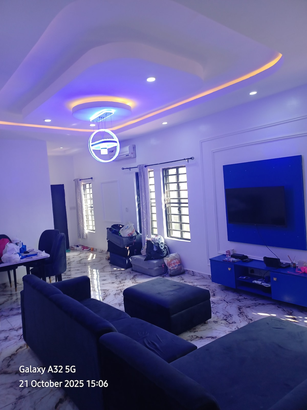 Praghas ar fhanacht fada, Wi - Fi idirlín snáithín, trí (3) Aerchóiritheoir, uisce te, córas Inbhéartóra Gréine, daingnithe, leapacha móra, cúlchlós príobháideach, carrchlós príobháideach, cistin fhairsing, clós súgartha do pháistí, teilifís chliste, crainn/adhmad neaby chun aer úr agus go leor eile a bhailiú. Lig do scíth leis an teaghlach ar fad ag an áit shuaimhneach seo. Spás/deasc oibre oiriúnach i bhfeidhm. NGN 10,000 de na haonaid leictreachais a chuirtear ar fáil ag an tseiceáil isteach, agus ina dhiaidh sin beidh an t - aoi freagrach as costas leictreachais.