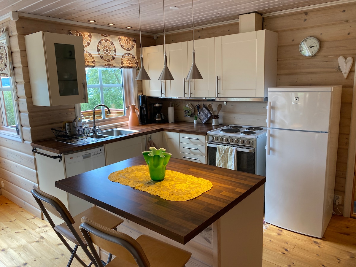 Teach nua iontach (2018) i gceantar álainn ciúin le radharc álainn ar an bhfjord/muir, sléibhte agus foraois in Kvaløya /Tromsø. Is féidir leat féachaint ar an solas álainn ó thuaidh / aurora borealis ón bhfuinneog ollmhór (10 méadar cearnach), agus tú i do shuí sa seomra suí le cupán tae nó caife i do lámh:-) Is áit iontach é seo do thurasóirí ar mian leo an solas ó thuaidh a fheiceáil, míolta móra san fhiorad sa gheimhreadh, fánaíocht/ sciáil sna sléibhte nó gach rud eile is mian leat sa chathair álainn seo.