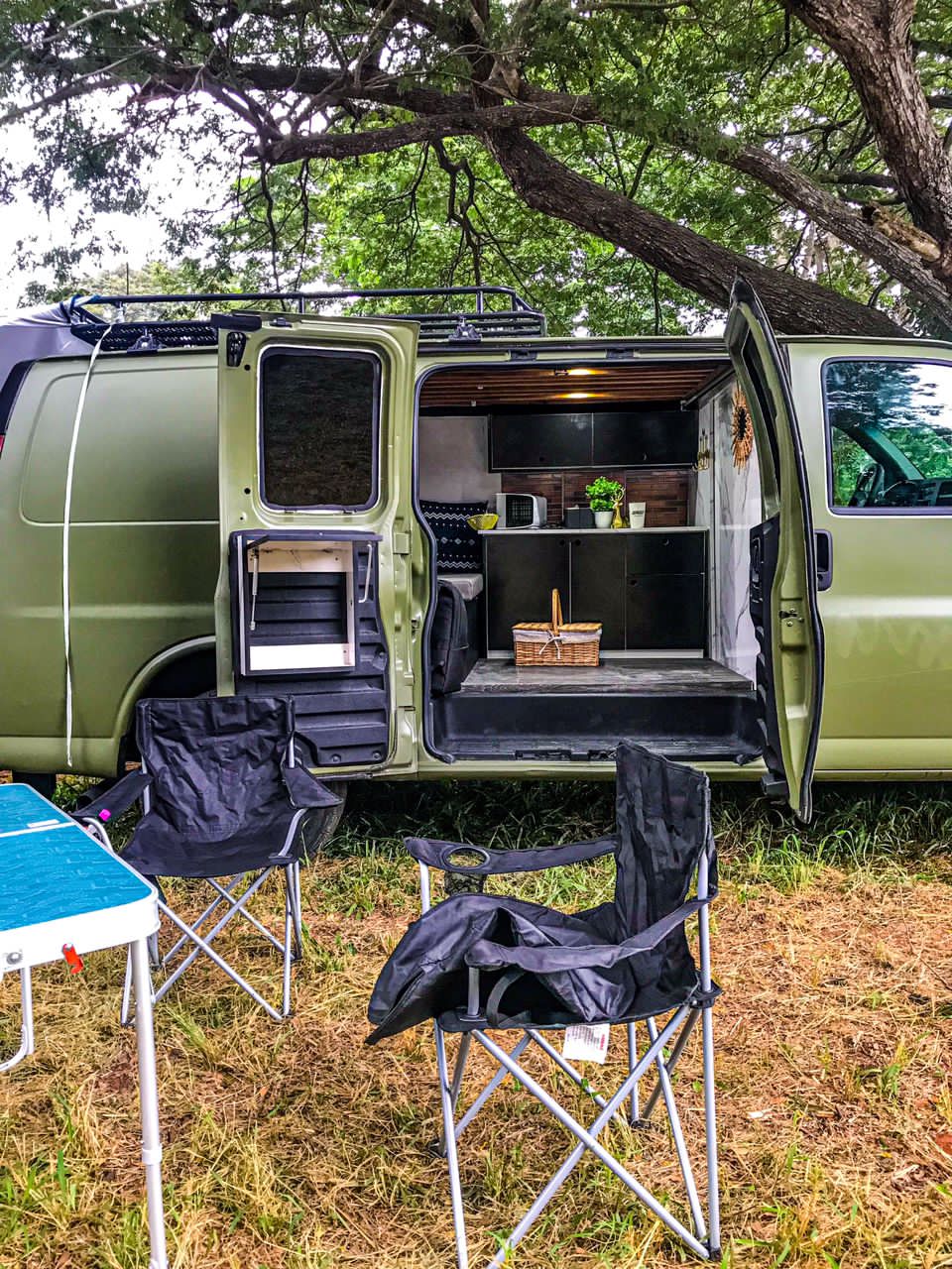 veain champála/ feithicil áineasa arna óstáil ag Awaycampers BUAIL LE HULK, veain LUAIS 3500 Chevy ar a dtugtar gurb é an CHÉAD fheithicil in Accra é,Gána go ndearnadh athchóiriú saineolach ar a bhfuil na saoráidí bunúsacha a chuirtear ar fáil chun eispéireas campála fiúntach lasmuigh den ghreille a dhéanamh in Accra agus ina réigiúin in aice láimhe.