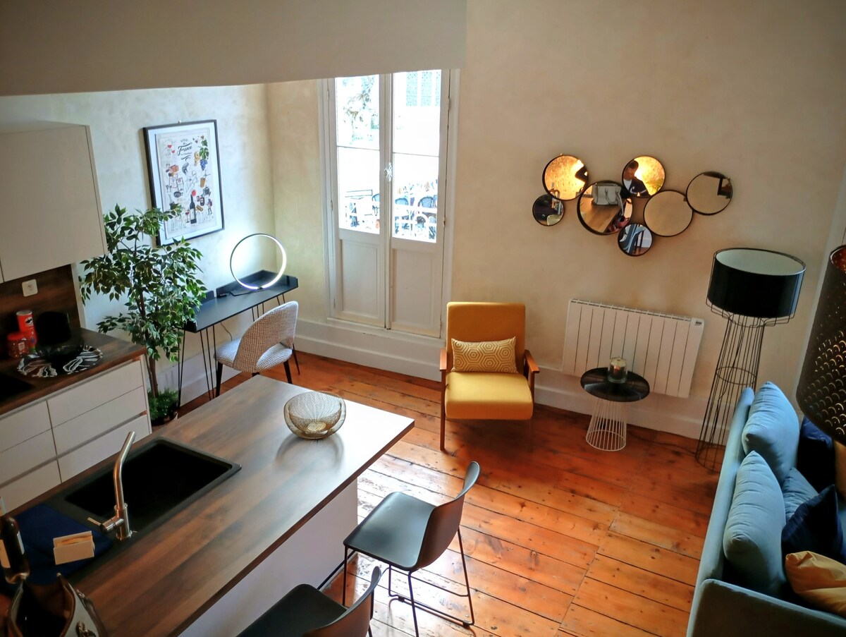 Bain sult as radhairc iontacha ar an Tour du Roy ón teach cloiche galánta seo, atá athchóirithe go galánta i gcroílár chathair mheánaoiseach Saint-Émilion. Tá gach rud laistigh d'achar siúil: bialanna, séadchomharthaí stairiúla agus siopaí ceardaithe. Áit eisceachtúil chun do scíth a ligean, dul ag spaisteoireacht trí na caolsráideanna agus taitneamh a bhaint as ealaín áitiúil na maireachtála. -15% le haghaidh tréimhsí fanachta seachtainiúla. 🍷✨