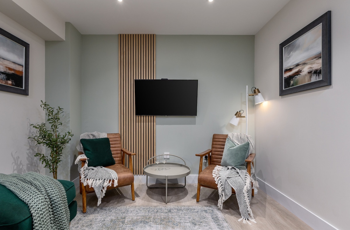 Tá tú suite go lárnach in Stirling; cuireann an t - árasán gleoite dea - dheartha seo thú laistigh de shiúlóid 5 nóiméad ón stáisiún traenach agus bus, chomh maith le siopaí agus bialanna, ag coinneáil gach rud in aice láimhe. Tá an spás oiriúnach do 3 aoi go compordach, ach is féidir leis freastal ar 4 aoi go héasca. Tá sé feistithe go hiomlán chun fanacht compordach a chinntiú. Is bonn den scoth é an suíomh chun an chathair a iniúchadh de shiúl na gcos. Tá páirceáil saor in aisce ar an tsráid ar fáil ar bhonn céaduaire, le páirceáil bhreise íoctha in aice láimhe.