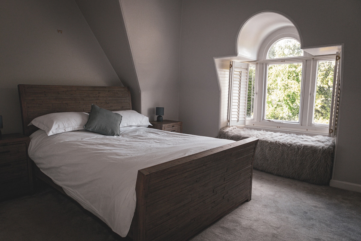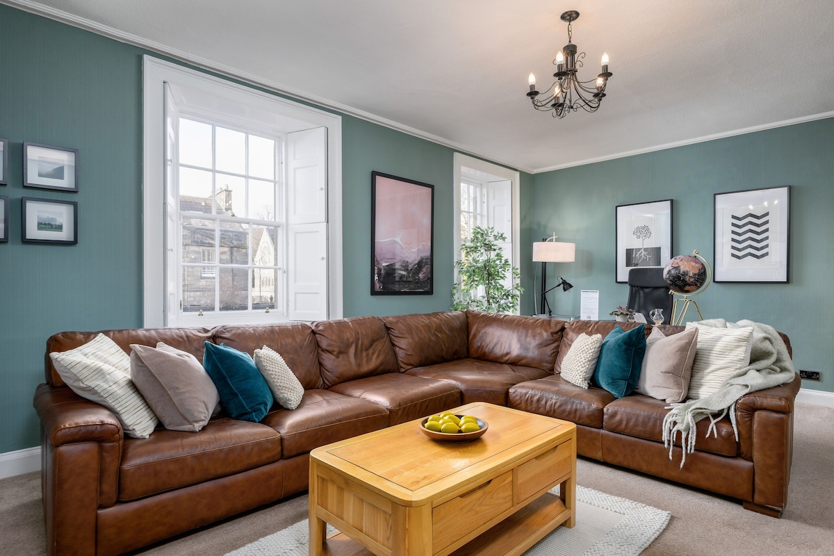 Arna chur i láthair ag Juniper Rentals: Tá ár dteach baile mór iontach suite i gceartlár Stirling, díreach soicind ó na beáir agus na bialanna agus siúlóid ghearr chuig an gcaisleán. Foirfe chun iniúchadh a dhéanamh ar bhuaicphointí na cathrach - Is buaicphointe é Teach Baile Stirling ann féin mar chroílár d'fhoirgneamh íocónach 200 bliain d'aois. Is staighre bíseach fíor - adhmaid é agus tugann an tréimhse seo le mothú seansaol! Ráthaíonn comhlaí adhmaid agus línéadach tí briosc ar ardchaighdeán codladh maith.