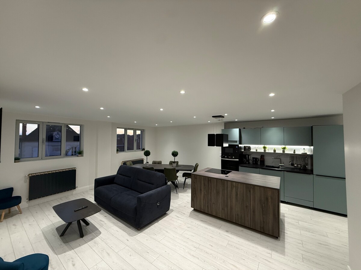 Chers futurs invités(es), Bienvenue dans notre superbe appartement duplex ! Veuillez noter que c'était auparavant notre maison. Moi-même et Simba avons vécu ici heureux pendant un certain temps et tout a été fait sur mesure, selon mes goûts (app 1er étage) Niché à 15 minutes à pied du centre-ville et 5 minutes de la gare, cet hébergement vous offrira je l'espère une expérience remarquable pour ceux qui recherchent confort, style et commodité. Attention, poutre au niveau de la chambre à 1m70