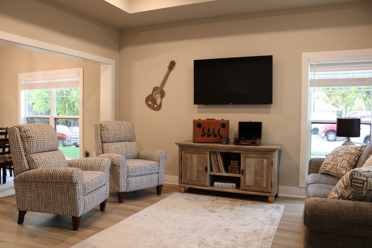 Lig do scíth agus lig do scíth sa teach suaimhneach, galánta seo a tógadh in 2025! Níl sé ach 5 nóiméad ar shiúl ó lár bhaile Wylie, agus tá spás do 6 duine sa teach seo ina bhfuil 3 sheomra leapa agus 2 sheomra folctha iomlána. Dhearamar an teach seo do dhaoine a bhfuil dúil acu sa cheol agus atá ag iarraidh saoire a ghlacadh - pioc suas an giotár agus cas ceol, cas ceirnín, nó lig do scíth le do cheol is fearr leat ar an bpóirse scáthaithe. Gach fearas nua dhosmálta, cistin dea-fheistithe, tochtanna cúr cuimhne, earraí níocháin spá, agus go leor eile.