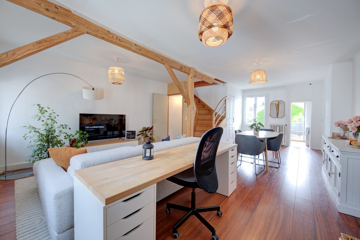 Bain leas as an scioból álainn athchóirithe seo de 150m2 a thabharfaidh an compord ar fad duit nuair a fhillfidh tú ó do chuairteanna turasóireachta. In aice le Tours agus bóthar an fháinne, is féidir leis an scioból teaghlaigh seo freastal ar suas le 9 nduine. Beidh tú buíoch go háirithe as a shíleáil ardeaglaise, chomh maith le spás maireachtála dochreidte! Ar fáil ag Inbed.