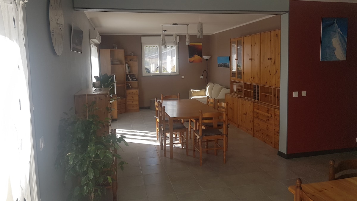 Villa sur terrain de 2000m², équipée de 6 vélos et d'une table de ping-pong vous offre un séjour détente pour toute la famille, travailleurs en équipe et étudiants. Les chambres sont loin des pièces de vie au calme et adaptées pour passer de bonnes vacances. A 10mn de la Centrale Nucléaire du Bugey, du PIPA St Vulbas, l'A42, Pérouges, 45mn du Parc des oiseaux de la Dombes et à 30mn de l'aéroport St Exupéry, à 5 mn du centre équestre de Chazey/ Ain, pratique pour vos déplacements.