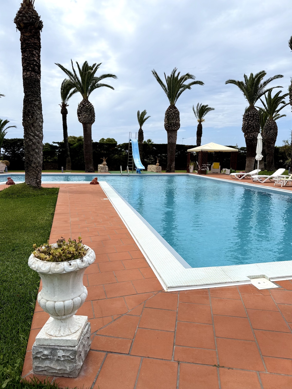 Tá an Villa Blu le linn snámha phríobháideach suite faoin tuath, cúpla ciliméadar ó Ostuni agus na príomhnithe is díol spéise in Puglia. Villa ársa ón 18ú haois atá ann, timpeallaithe ag gairdíní agus crainn olóige na gcéadta bliain d'aois. Is éard atá ann seomra leapa, cistin, dhá sheomra suí mhóra. Tá na seomraí fairsing, scagtha, feistithe le troscán tréimhse agus feistithe le gach compord. Leis an Spá príobháideach agus Hammam, tá sé foirfe le haghaidh fanacht scíth a ligean agus rómánsúil.
