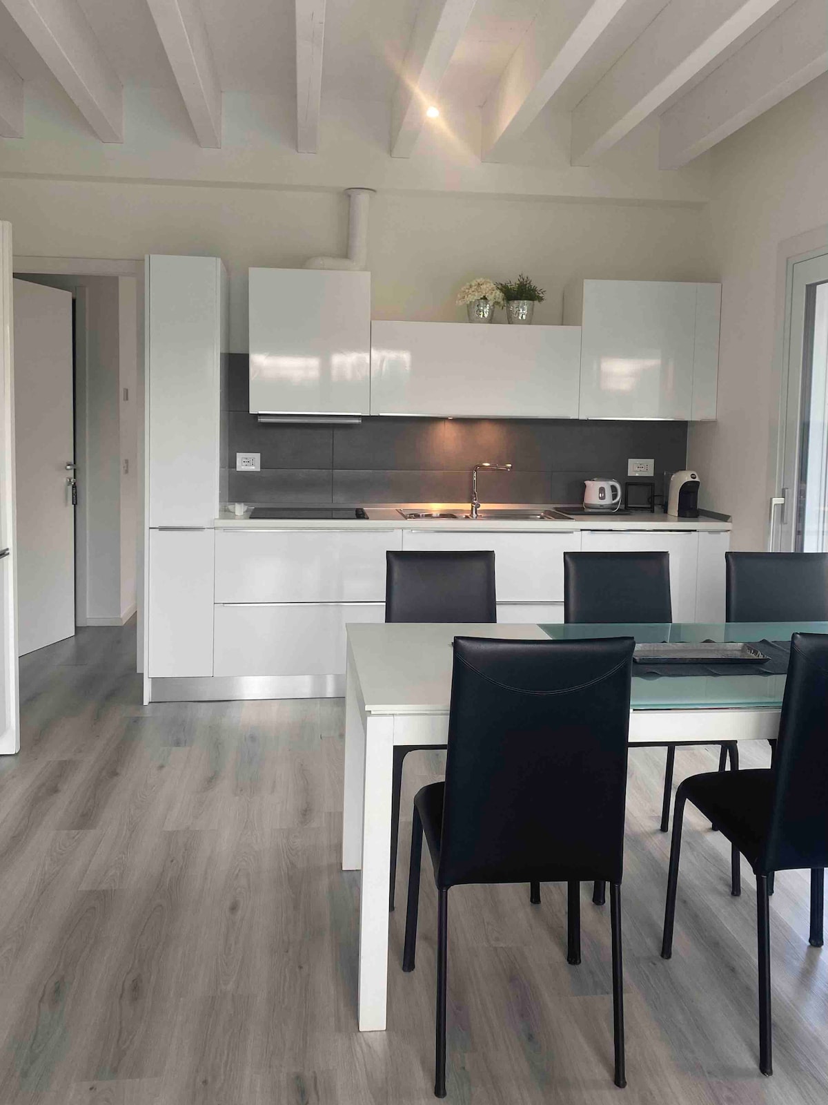 Bain sult as ár dteach, árasán deartha, áit a bhfuil píosaí íocónacha troscáin ag meascadh le seanré. Athchóirithe le déanaí, cuireann sé trí sheomra leapa mhóra agus trí sheomra folctha neamhspleácha nua ar fáil. Ar an dara hurlár, tugann balcóin mhór radharc ar shráidbhaile an Gharda Síochána agus an Rocca. Ar an dara hurlár, cruthaíonn fuinneog mhór timpeallacht uathúil idir an seomra suí oscailte, an t - ardán, an spéir agus an loch. Siúlóid 5 nóiméad ón loch, tá spás páirceála buan eisiach ar fáil inár n - árasán.
