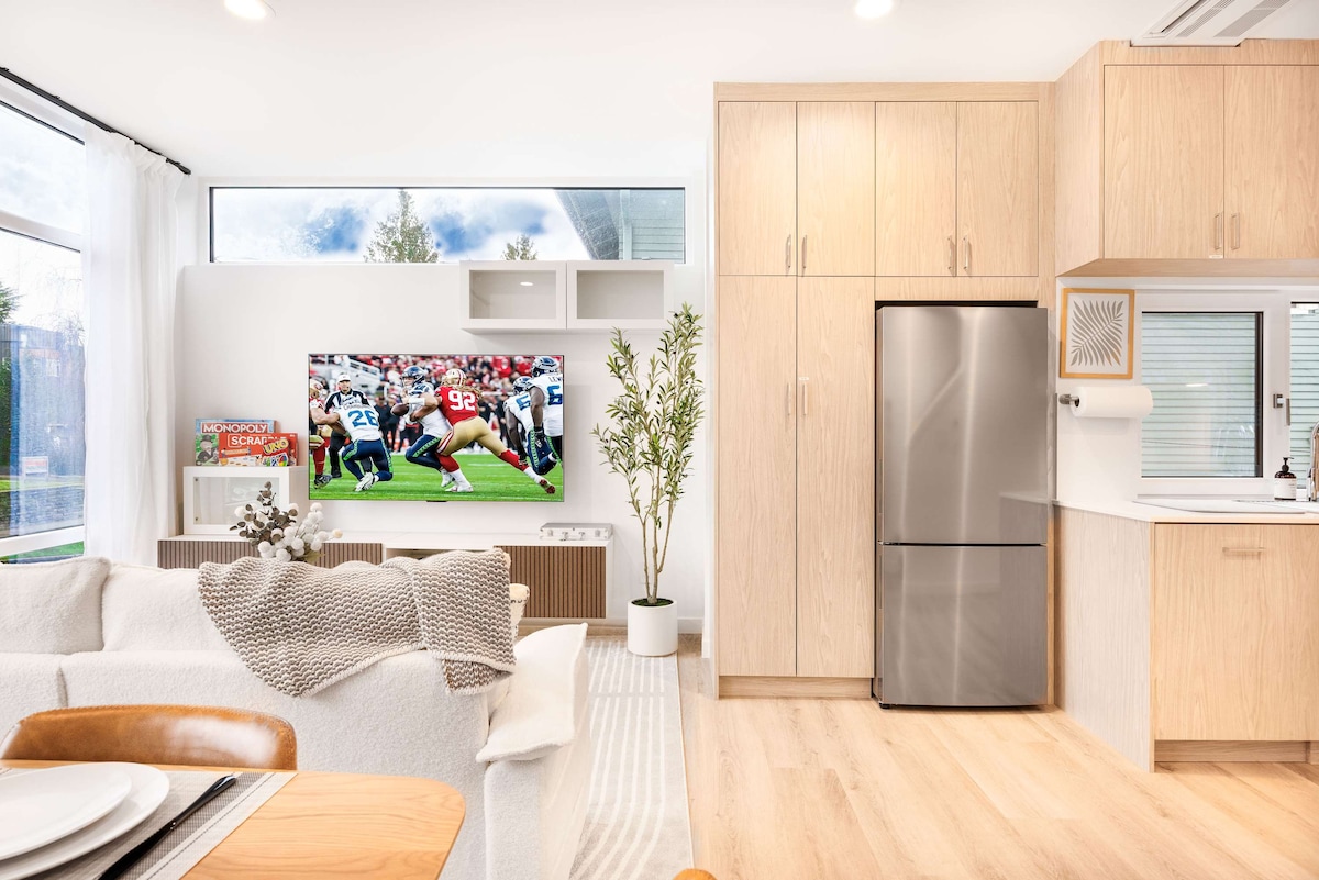 Nua - thógtha agus atá le feiceáil i mí an Mheithimh '19 Pacific NW Magazine, beidh tú ag athcheangal i stíl le suaimhneas. Faigh blaiseadh de mhaireachtáil siar ó thuaidh agus tú ag déanamh iontais ó na seomraí leapa agus ó na spásanna lasmuigh go radhairc iontacha ar Bhá Elliot, ar Shléibhte na Cascáide agus ar Dhroichead Ballard. Bí te san oíche le hurláir théite radanta nó fuaraigh le haerchóiriú. Le Córas Baile Cliste suiteáilte do do riachtanais cheoil agus soilsithe, bí cluthar sa chistin cruach dhosmálta!