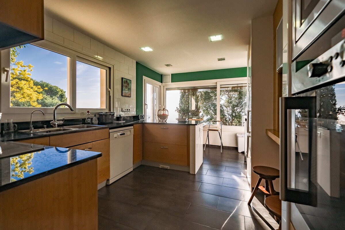 Na radhairc is fearr de Salou. Níos mó ná 180º de radharc na farraige agus radhairc feadh an chósta go Deilt Ebro. In aice le Teach Solais Cap Salou agus a dhearcadh. Os comhair cuas creagach, 200 m ó thrá Cala Crancs agus in aice le páirc phoiblí Cala Morisca. Villa nua - aimseartha agus éiceolaíoch, gnátháit chónaithe na n - úinéirí (an chuid eile den bhliain) Áit chiúin, gan fuadar agus fuadar i lár Salou Tá na coimisiúin agus an ráta turasóireachta san áireamh sa phraghas, ní bheidh aon iontas ort faoi íocaíochtaí breise.