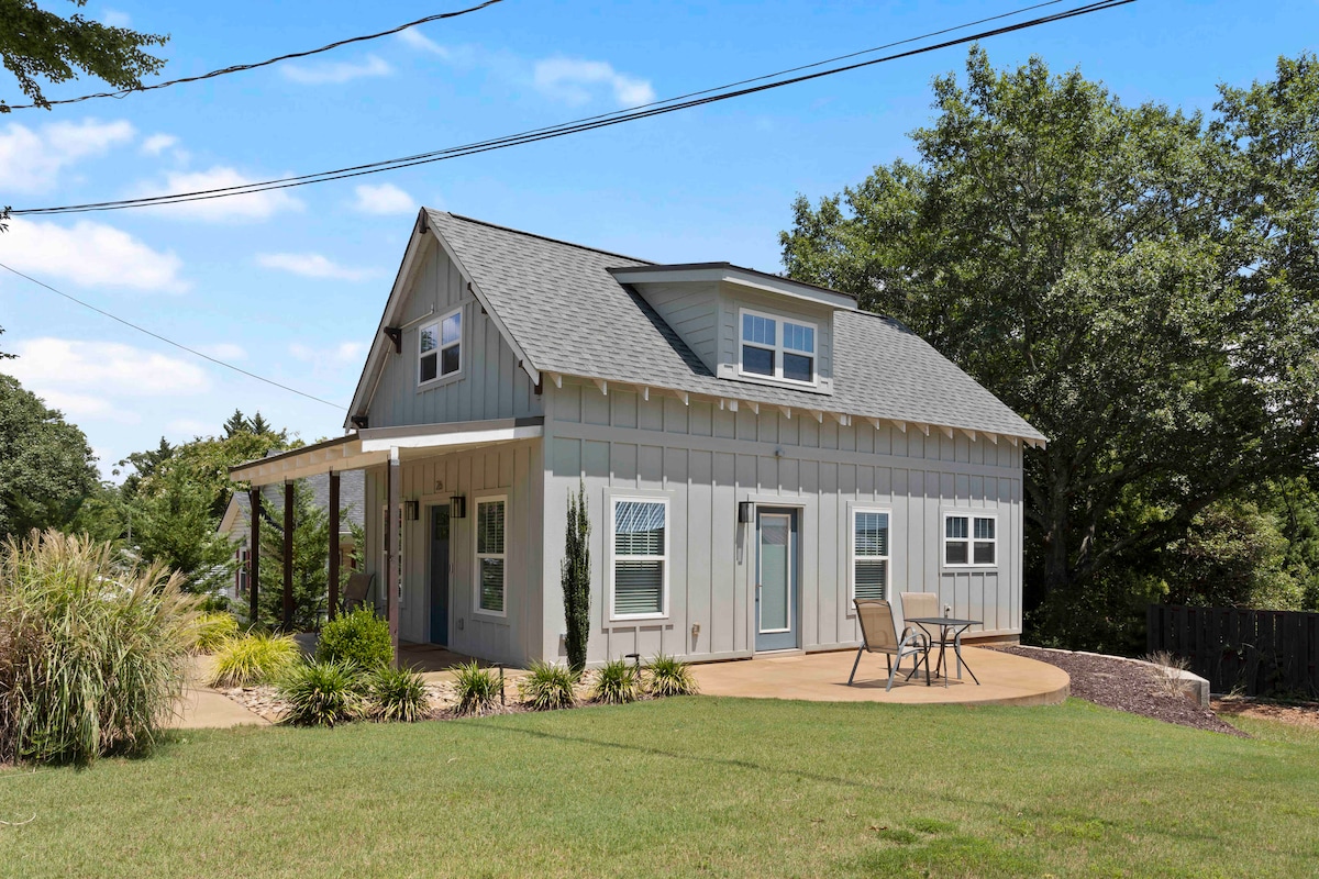 Bain sult as eispéireas suaimhneach ag an áit seo atá suite go lárnach, ar shiúl ón tuath agus ón mbuscar ach gan ach 6 nóiméad ó Clemson (10 nóiméad ó Ollscoil Clemson), atá suite sa tír i gcomharsanacht shíochánta shábháilte ina bhfuil go leor príobháideachta mórthimpeall uirthi. Tá póirse tosaigh sa teachín ina bhfuil 2 chathaoir, ámóg 2 dhuine, gríoscán, agus poll dóiteáin (cuirtear adhmad ar fáil) ina bhfuil trí chathaoir fhaiche. Tá leaba bhanríona ann agus mála pónaire CordaRoy (*leaba #2) a osclaíonn suas le leaba bhog a chodlaíonn duine fásta amháin nó beirt pháistí.