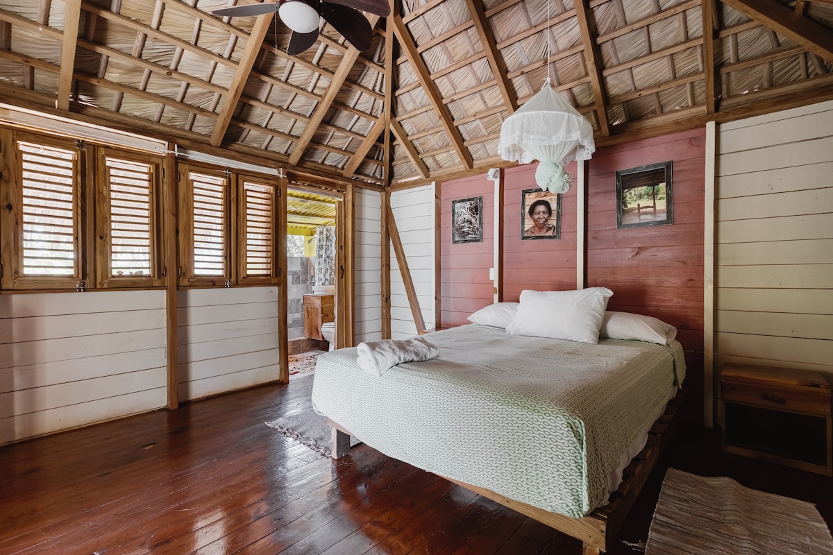 Cábán tuathúil dúbailte atá suite i Lóiste trópaiceach. Tógáil thraidisiúnta Dhoiminiceach (adhmad agus cána). 1 Leaba bhanríona. 1 seomra folctha iomlán ensuite. Toilleadh: 2 dhuine. Uisce te. Línéadach tí agus tuáillí curtha ar fáil saor in aisce. Gaothrán síleála. Líon muiscítí. Glantachán laethúil. Tá linn SNÁMHA, beár/siopa caife, gairdín le beárbaiciú, páirceáil saor in aisce agus Wi - Fi saor in aisce sa lóistín. Cuirtear bricfeasta, lón agus dinnéar ar fáil ar tháille bhreise. Turais áitiúla.