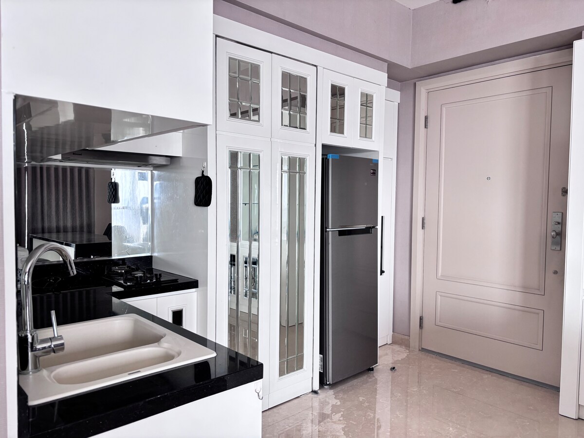 Bain sult as stíl mhaireachtála ghalánta san árasán úrnua seo in 2023, le rochtain dhíreach ar an Meall is mó san Indinéis, Pakuwon Mall. Tá an t - árasán só seo suite i bhfoirgneamh LaViz agus tá saoráidí iomlána ann amhail giomnáisiam, linnte snámha, seacláid the, gairdín ar an díon, agus concierge 24 uair an chloig san fhorhalla. * Níl páirceáil saor in aisce ar fáil ach amháin ar iarratas le haghaidh tréimhsí fanachta seachtainiúla/míosúla. Chun é a iarraidh, cuir é sin in iúl dom agus cuir teachtaireacht chugam 5 lá ar a laghad roimh ré. Beidh grianghraf de do STNK ag teastáil uaim. Tá páirceáil íoctha ar fáil.