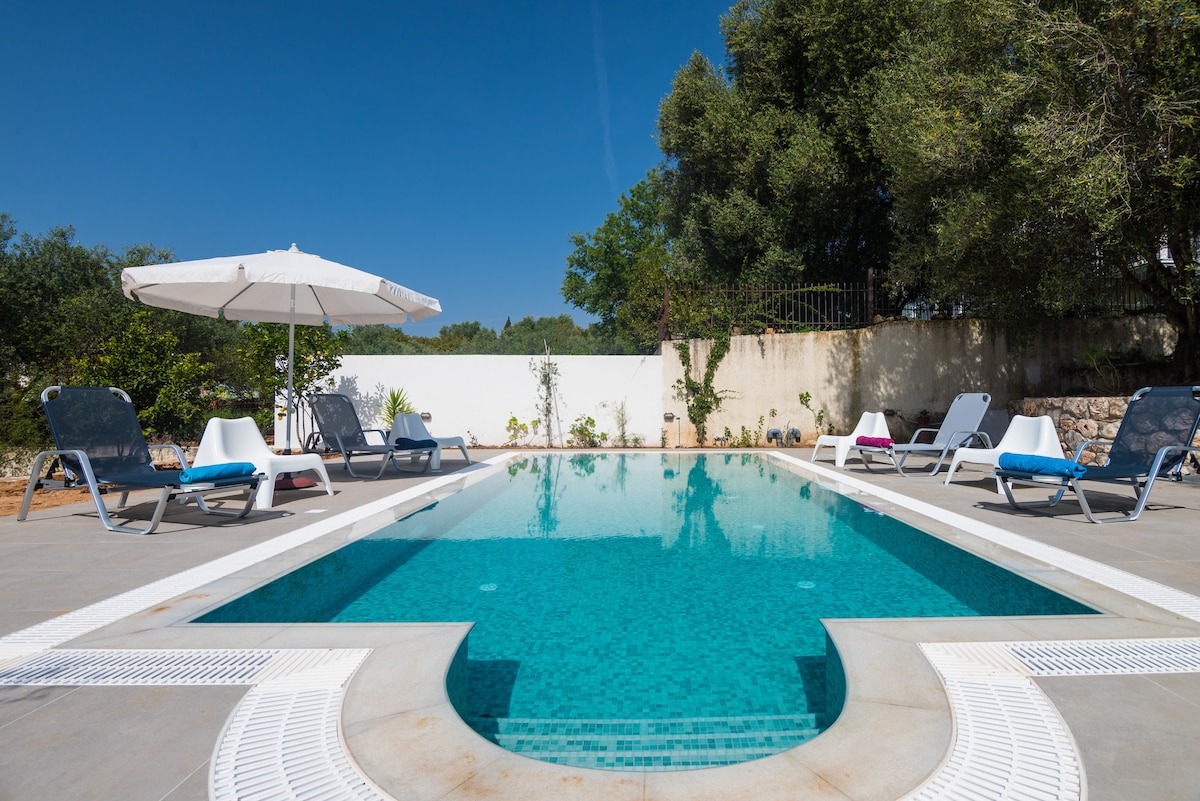 Bain sásamh as ár villa traidisiúnta a athchóiríodh le déanaí le linn snámha phríobháideach, neadaithe i sráidbhaile gleoite Metaxata. Le dhá sheomra leapa, lena n - áirítear seomra folctha ensuite, comhcheanglaíonn an villa seo compord nua - aimseartha le aeistéitic chlasaiceach. Feistithe go hiomlán do do chaoithiúlacht, geallúintí sé éalú idyllic. Suite 7 -10 nóiméad ag tiomáint ar shiúl ó Argostoli agus scaoil leis na tránna gréine amhail Ammes, Avythos, Ai Helis, agus Pessada.