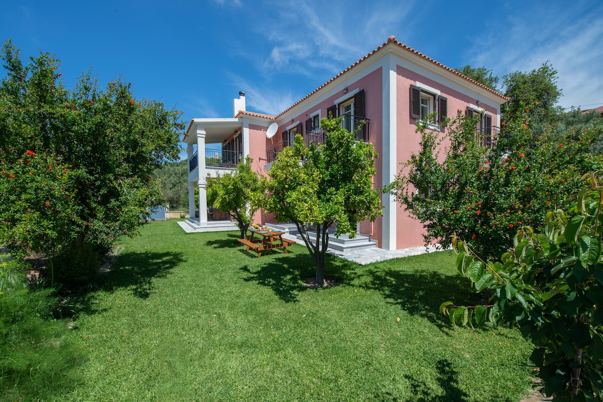 Villa álainn 1 seomra leapa, le linn snámha phríobháideach. Codladh suas le 4, suite i dtimpeallacht álainn. Radhairc sléibhe, o.8 km ó Sami, tumtha i gcuasa agus tránna, cuireann an teach taibhseach seo an scíth ar fáil duit leis an mbónas breise a bhaineann leis na nithe go léir is díol spéise ar leac an dorais agat. Le spá mar a bhraitheann tú nach bhfuil sa teach seo ach le haghaidh d'fhanachta. Tá gach rud a bheidh uait sa teach ó chistin ina bhfuil go leor spáis ann chun scíth a ligean. Suite in aice leis na conairí siúil áille