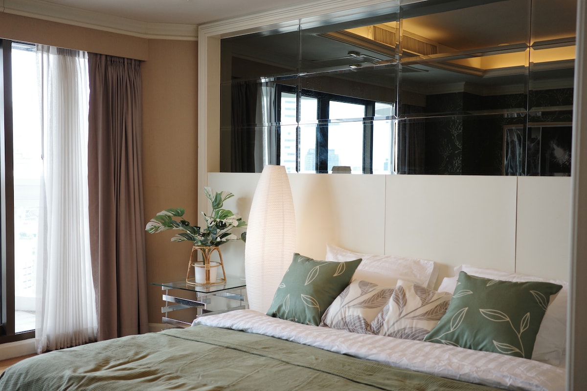 Is árasán coincheapa úrnua é an teach speisialta seo atá deartha ag dearthóir, agus tá an teach iomlán suite i gcroílár Bangkok, gar do gach rud.Tá 1 seomra leapa, seomra suí, seomra bia, cistin agus 1 seomra folctha san áireamh. [Suíomh] - Iompar áisiúil: Croílárcheantar Sukhumvit, siúlóid 980m go stáisiún subway Phrom Phong, siúlóid 10 nóiméad - Scrín Erawan 4.7km, Siam 8km, Grand Palace 13km - Siúlóid 10 nóiméad go Emporium Mall - Áisiúlacht: siopaí áise 24 uair an chloig ar fud, ollmhargaí móra, ionaid siopadóireachta, Spa a bhfuil cáil mhór air [Restroom] - Folcadán tirim agus fliuch scartha, seomra cithfholcadáin agus doirteal láimhe, vardrús, triomadóir gruaige, seomra cithfholcadáin le gallúnach choirp, seampú agus feabhsaitheoir, glantach [Seirbhísí curtha ar fáil] - Féin seiceáil isteach & féinseiceáil amach (Seiceáil isteach 15:00, seiceáil amach 11:00) Tá fearais sa chistin amhail cuisneoir, sorn, micreathonnán le haghaidh cócaireacht shimplí.Glan suas i ndiaidh tú féin, le do thoil, agus bí sábháilte agus tú in úsáid. - Cuirtear meaisín níocháin agus glantach níocháin ar fáil - Seomra suí le tolg compordach, teilifíseán cábla, aerchóiriú, tábla caife - Tá Wi - Fi ar fáil san árasán agus sa seomra - Closet, éadaí Crochadáin agus tuáillí folctha