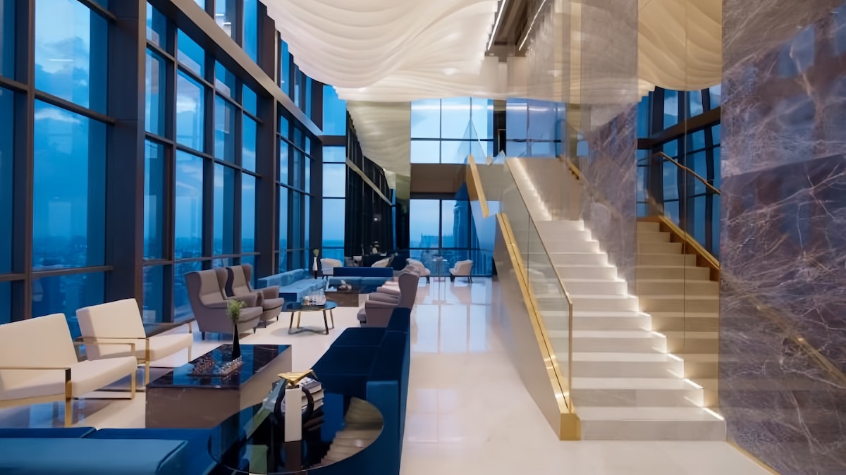 Bain sult as d'eispéireas galánta ag an áit lárnach seo in Bangkok le hachar siúil chuig áit ghnó agus gan ach nóiméad go dtí an príomh - iompar faoi thalamh. Cuirfidh radharc lánléargais ar na háiseanna ar bharr an dín anseo fáilte romhat leis an radharcra fíor - chathair Bangkok go hiomlán; seanbhaile, tosaigh abhann agus skyscrapers CBD. - Siúlóid 1 nóiméad go dtí an fobhealach MRT Samyan - 5 nóiméad siúil go dtí an skytrain BTS Saladeng - 5 nóiméad ar shiúl ó mheall Paragon -15 nóiméad go Chinatown -20 nóiméad go dtí an Grand Palace