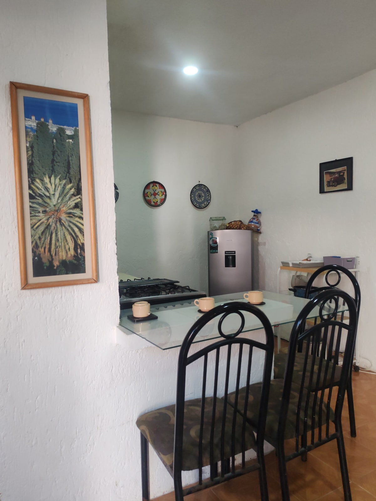 Industrial-style loft filled with plants and natural light. On the ground floor, there’s a sofa bed, 55” TV with cable/streaming, fully equipped kitchen, dining area, and a half bathroom. Upstairs, the bedroom has a double bed, a desk, and a full bathroom. Sleeps up to 4 guests. Within walking distance to the best restaurants, bars, and tourist spots in Cholula. **Weekend noise possible from a bar across the street. **Parking subject to availability.
