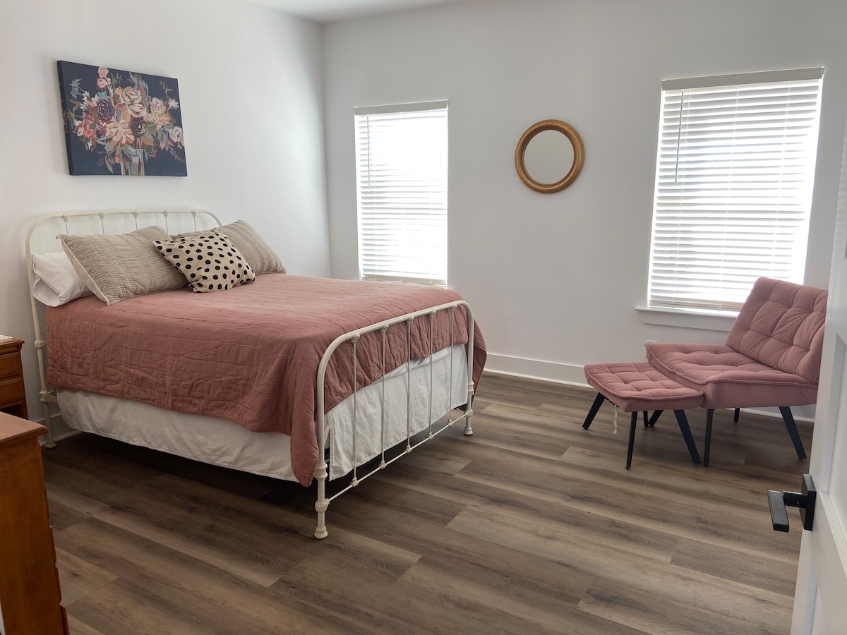 Iontráil leictreonach gan eochair (le haghaidh féinseiceáil isteach), cainteoir bluetooth sa seomra folctha, teilifíseán w/físeán ar éileamh, Wi - Fi ardluais. Leaba: leaba bhanríona chompordach le tocht cúr cuimhne, piliúir bhreise & blaincéad. Seomra folctha: tuáillí breise, trealamh garchabhrach & fuála, páipéar leithris, gallúnach, seampú & níochán coirp, triomadóir gruaige, Clár iarnála, iarann & stáirse & sábháilte. Mionchuisneoir le reoiteoir, micreathonnán, déantóir K - cupán le caife, siúcra, milseoir agus cupáin curtha ar fáil. driive gearr go GAFB. (Fuair mé réadmhaoin le hoidhreacht dá bhrí sin ar phraghas íseal)