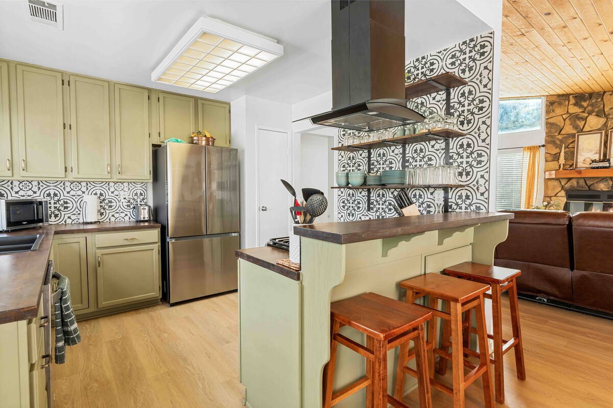 Neadaithe ach achar gearr ó LA, glacadh leis an tírdhreach iontach de sunsets pictiúr - foirfe ó na balcóiní agus radhairc iontacha ón teach. Éist le ceol na bhfiach dubh agus na bhfiach agus tú ag ól do chaife ar maidin, nó téigh i bhfostú i leabhar cois tine. Le feiceáil in “Na háiteanna fanachta Airbnb agus na cábáin is fearr i mbliana” de chuid Fodor’s Travel! Tiomáint 4 nóiméad go Loch Gregory, 12 nóiméad go Lake Arrowhead, agus 45 nóiméad go Big Bear. Tá an oiread sin le hiniúchadh, nó is féidir leat fanacht go compordach laistigh, go mbainfidh tú taitneamh as d’am anseo.