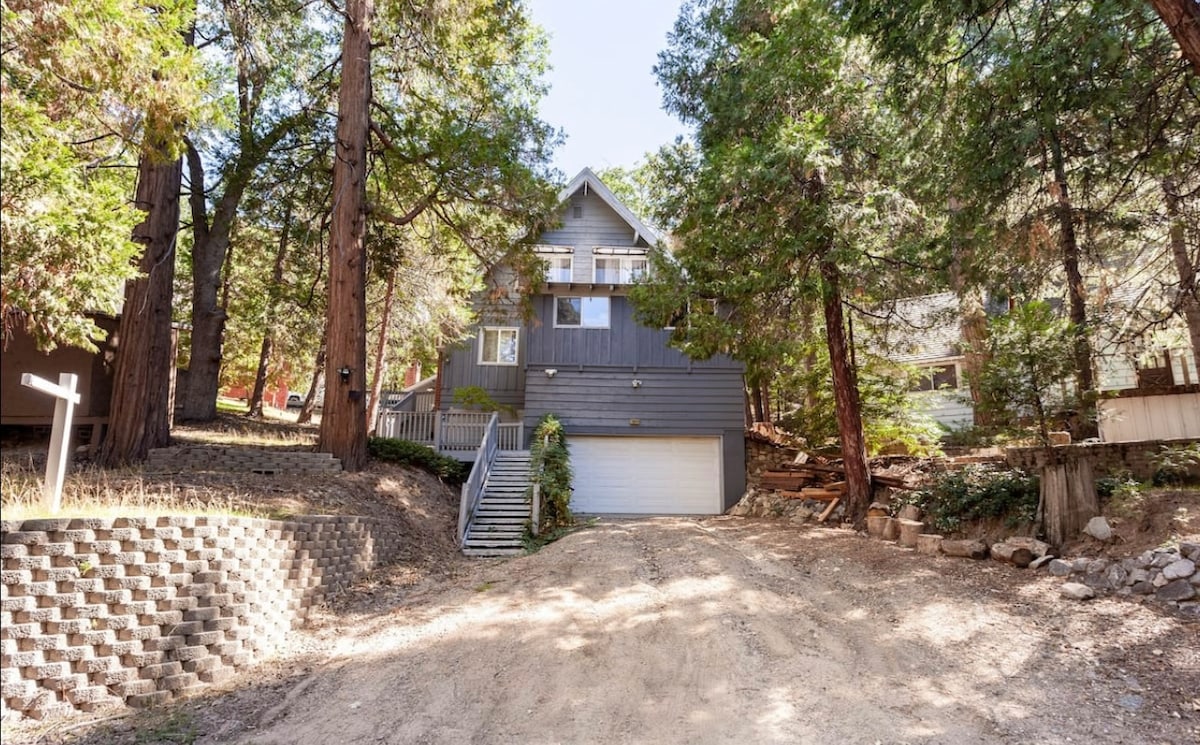 Tá "Two Wolves" suite sna radhairc shíorghlasa w/treetop. Foirfe do chruinnithe ach coinníonn sé cóngaracht phearsanta do ghrúpaí níos lú. 30 nóiméad do Chruinniú Mullaigh Sneachta (sciáil), an - ghar do Arrowhead Village, Skypark, Lake Gregory, fánaíocht & go leor eile. 3 fl, 3 bdrm (4 leaba), tá 3 theallach oibre, ceann maisiúil agus 5 dheic agus fhuinneog feistithe ar fud an fholcadáin ionas gur féidir leat an áilleacht nádúrtha a bhlaiseadh go díreach nó ón taobh istigh cois tine. Wi - Fi, luchtú EV, glas cliste le haghaidh féinseiceáil isteach, cistin iomlán.