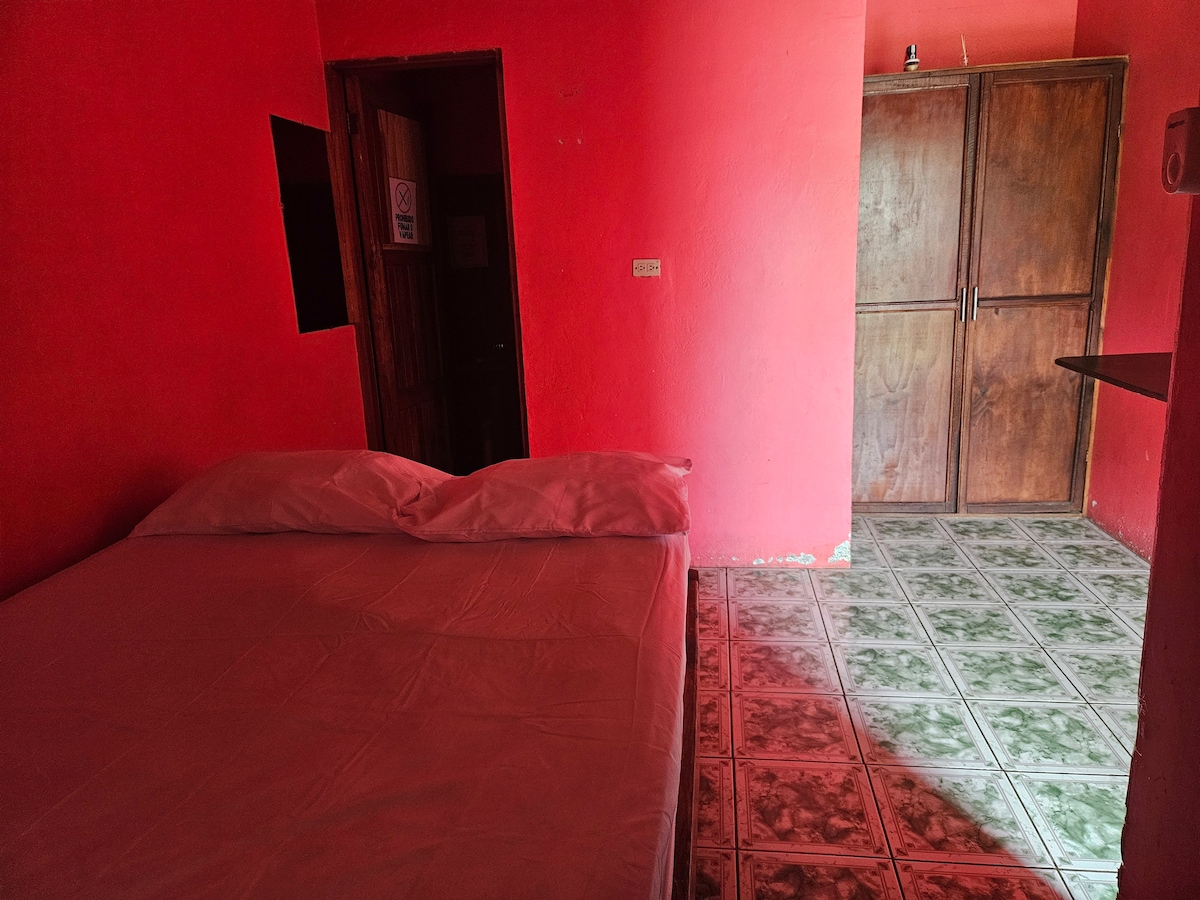 Is áit shuaimhneach í an Cabaña atá suite i gcroílár na foraoise tánaisteach in aice le Tenorio Bolcáin, áit ar féidir leat sloths, éin agus froganna a fháil. Tá dhá sheomra ann, ceann amháin le leaba rí - mhéid agus ceann amháin le dhá leaba aonair, seomra folctha agus cistin faoi throscán. NÍL bricfeasta san áireamh ach is féidir é a dhíol más mian leis na cliaint agus é a iarraidh, tá sé déanta as táirgí feirme. Táimid suite i gceantar tuaithe, in San Miguel - Bijagua, tá an bóthar chun dul go dtí an baile pábháilte agus tá coinníollacha maithe ann.