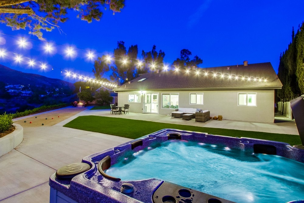 Cuireann an teach seo linn snámha agus Spá Sáile ar fáil. Táirgeann linnte sáile agus Spá uisce níos boige. Radhairc iontacha óna shuíomh go hard sna cnoic ag breathnú amach ar Rancho San Diego. Sa chúlchlós is féidir leat taitneamh a bhaint as éirí na gréine ón linn snámha phríobháideach nó ón deic nó do dheic a chleachtadh agus tú ag cur glas orainn. Is teach nua - aimseartha i lár an chéid é an Teach atá suite os cionn na Cathrach. Tá sé go hiontach do ghrúpaí atá ag lorg rochtain éasca ar bhuaicphointí San Diego (15 go 20 nóiméad chuig Tránna agus Downtown)