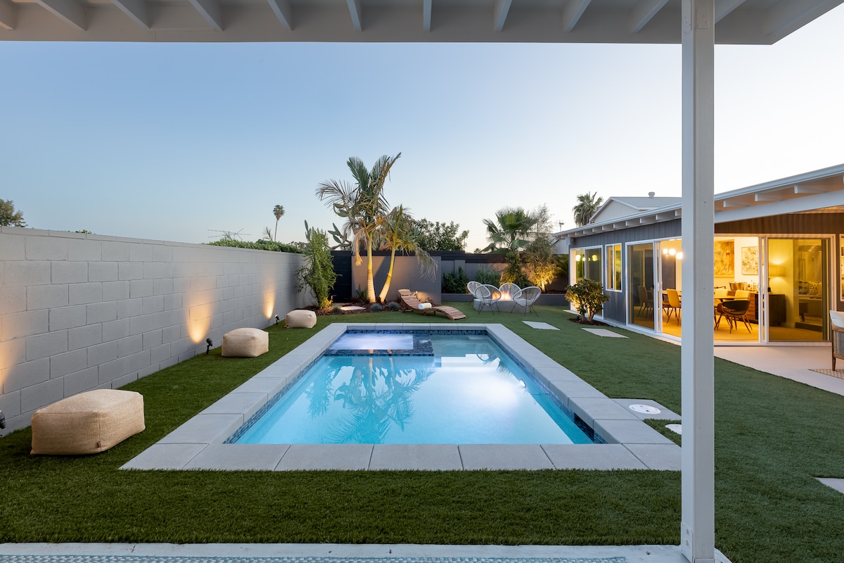 Midcentury Lux 4BR home w Pool/Spa/Cabana/Firepit